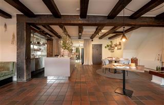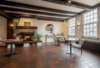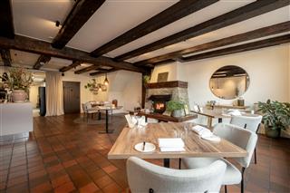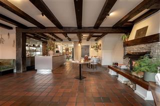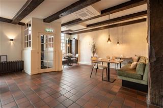 Dit restaurant ligt direct aan de Hoofdstraat en heeft een vriendelijke uitstraling, met kleine ruitjes in de ramen en een sierlijke dakkapel. Het terras aan de voorzijde is ongeveer 60 vierkante meter groot. De voordeur van het restaurant zit in het midden van het pand. Wie binnenkomt, stapt direct het mooie, intieme restaurant binnen. Hier valt gelijk de sfeervolle, authentieke schouw met inzethaard op. Momenteel staan hier ongeveer tien tafels, maar deze opzet is opvallend ruim, zodat meer tafels zeker mogelijk is. De bar bevindt zich vrijwel in het midden van de zaak en is voorzien van onder andere een drankenkoeling, wasbak, lades en opbergruimtes voor glaswerk en bestek. Vanaf de bar is er zicht op de open keuken. Achter in het restaurant bevindt zich een grote eettafel en daarachter de aparte heren- en damestoiletten en een vestiaire.