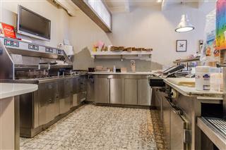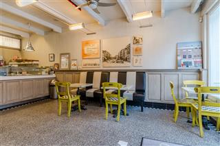 Via de entree komt men in de verkoopruimte met ca. 10 zitplaatsen. Aan de achterzijde van deze verkoopruimte vindt men de bakwand, doorgang naar de keuken en de opgang naar de bedrijfswoning. In de keuken vindt men een gasfornuis, spoeltafel, diverse vrieskasten en een koelcel. Achter deze ruimte is de opslagruimte en personeelstoilet gelegen, tevens vindt men hier een kleine binnenplaats. Aan de voorzijde is een terras met ca. 12 zitplaatsen.