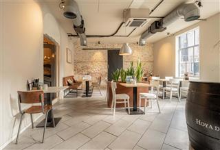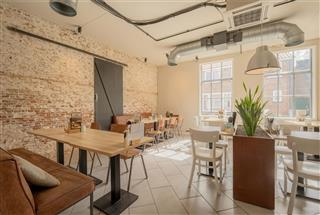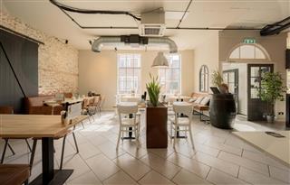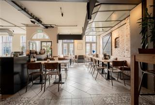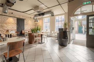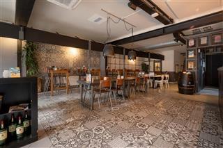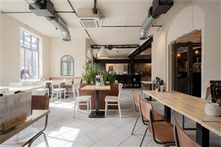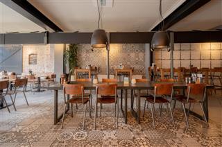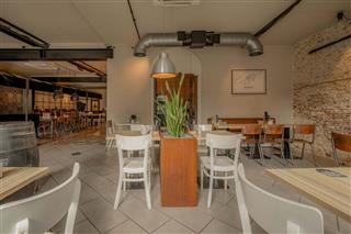 Je vindt De Domburger in een fraai pand aan de drukke Weststraat. Het terras, met plaats voor zo’n 16 gasten, oogt uitnodigend. Groene stoelen, houten banken en een moderne elektrisch bedienbare zonwering maken het samen met het pand tot een echte blikvanger. Het terrasmeubilair is in 2022 volledig vernieuwd. Binnen stap je via een kleine hal het restaurant in. Een wijnvat fungeert als ontvangstbalie en een lange kast dient als roomdivider, waarlangs gasten links of rechts de zaak in lopen. Het restaurant biedt plaats aan circa 90 gasten en ademt een warme, gemoedelijke sfeer met houten tafels en bruine stoelen. Aan de rechterzijde bevindt zich de ruime uitgiftebar van ruim vier meter breed. De witte tegels op de achterwand springen direct in het oog. De bar is uitgerust met een volledige tapinstallatie met fustenkoeling, een 2x 2 deurs en 1x 4 deurs flessenkoeling. Verder onder andere een glasspoelapparaat met osmose (2023), een ecotap voor gefilterd water en bruiswater en een Rombouts koffiemachine. Hier vind je ook de kassa. Achterin het restaurant ligt een fraai ingerichte kinderhoek, compleet met enkele tafels zodat ouders hun spelende kinderen goed in de gaten kunnen houden. Direct naast deze ruimte bevindt zich een kleine, afgesloten kantoorruimte. Hier vind je ook de toiletgroepen met 2 damestoilet, een herentoilet en urinoir.