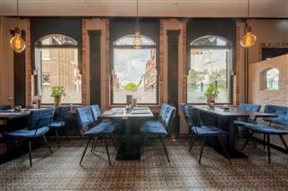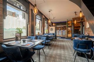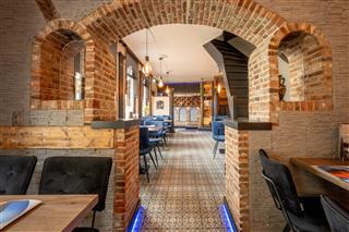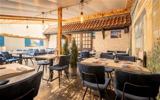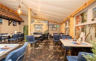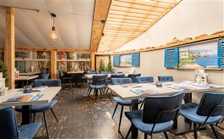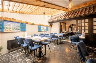 Binnen is het interieur in 2020 in samenspraak met een binnenhuisarchitect volledig vernieuwd. De kleuren blauw, zwart en grijs in combinatie met hout zorgen voor een warme, aangename sfeer. De pilaren versterken het mediterrane karakter van het restaurant, maar deze kunnen vanzelfsprekend eenvoudig vervangen of weggehaald worden, al naar gelang het horecaconcept van de nieuwe eigenaar.