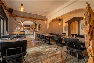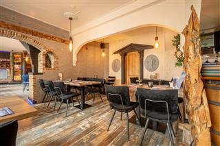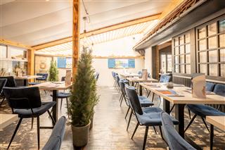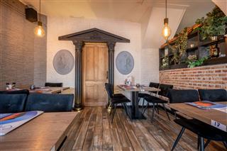 Wie voor het restaurant staat, ziet dat het drie percelen omvat. Het middelste deel is het oudste deel en dateert van circa 1885. Het linkerdeel is, na een brand in 1987, opnieuw opgebouwd. Hier vind je ook de ingang. Bij de binnenkomst, via het glas omheinde terras, zie je links de bar en rechts het restaurant. In dit eerste deel van het restaurant is plaats voor ongeveer 20 gasten. Loop je verder, dan kom je in het middengedeelte. Daar kunnen ongeveer 40 gasten ontvangen worden. Het rechterdeel tot slot telt 32 zitplaatsen en is afsluitbaar van het middendeel. Vanuit het middendeel hebben de gasten toegang tot de garderobe en de heren- en damestoilet, die smaakvol neutraal is uitgevoerd in zandtinten. Daar is tevens een deur naar de bovenwoning. In het middeldeel staat de saladebar.