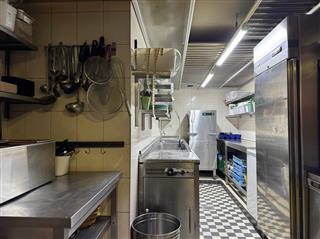 Via het terras kom je binnen in het restaurant. Er is een ruime zitruimte met authentiek Grieks interieur, een centrale bar en een open keuken. De toiletgroep bevindt in de kelder met achterin opslagruimte.