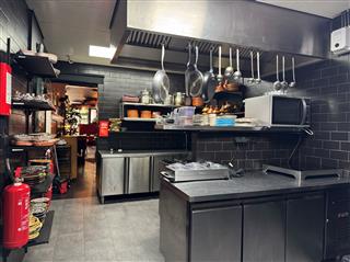 De gehuurde ruimte is ca. 120 m2. Waarvan de keuken 20 m2 is. Het terras is 15 m2.