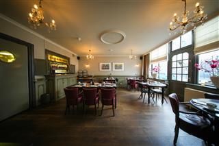 Via het terras komt men in de hal. Aan de linkerzijde van de hal vindt men het restaurant gedeelte met bar, ca. 40 zitplaatsen en gescheiden toiletgroep. Aan de rechterzijde van de hal vindt men het de eetkamer (ontbijtruimte & private-dining) met ca. 20 zitplaatsen en de keuken. Gaat men rechtdoor in de hal dan komt men in de multifunctionele zaal met daarachter gescheiden toiletgroep en opslagruimte. Aan de achterzijde vindt men een binnenplaats welke te overkappen is middels een luifel.
