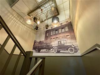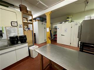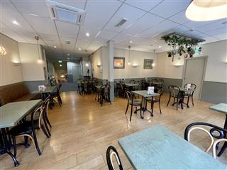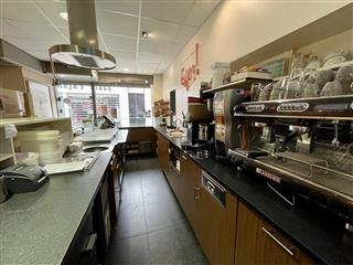 Aan de voorzijde van het pand bevindt zicht de uitgifte balie en keuken met openslaande pui en koelvitrine. Aan de achterzijde vindt men ca. 30 zitplaatsen, de spoelkeuken en opgang naar de eerste verdieping. Op de verdieping zijn ca. 50 zitplaatsen, gescheiden toiletgroep, ruime voorbereidingskeuken met koel- en vriescel en opslagruimte. Het pand beschikt over een zeer ruime zolder welke thans als was- en opslagruimte gebruikt wordt.