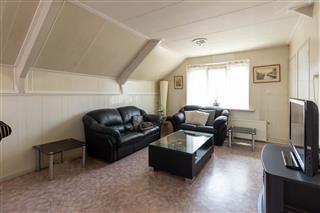De bovenwoning is te bereiken via een aparte ingang aan de linkerzijden van de cafetaria of binnendoor via het zitgedeelte. De woning is ruim opgezet en is een aantrekkelijke optie voor een ondernemer die boven zijn zaak wil wonen.