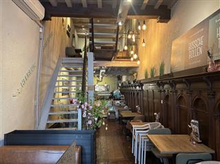 Het pand onderscheidt zich door zijn speelse indeling met meerdere niveaus. De zitplaatsen zijn verdeeld over verschillende hoogtes, wat zorgt voor een dynamische, intieme beleving waarin gasten zich direct thuis voelen. Deze indeling maakt het ideaal voor het creëren van verschillende zones en knusse hoekjes. In combinatie met de praktische keuken biedt dit pand een uitstekende basis voor ondernemers die een onderscheidend koffie-, lunch-, bistro- of tapasconcept willen realiseren.