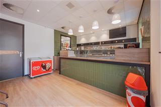De cafetaria is vrij van elke formule en is voorzien van de meest hoogwaardige frituur bakwand met een grote capaciteit welke van alle gemakken is voorzien waaronder een spiegel bakplaat.