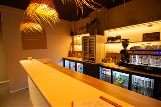 Bij binnenkomst via de glazendeur wordt direct de intieme sfeer en uitnodigende bar zichtbaar. Het interieur kent een lichte, maar toch warme uitstraling die zorgt voor een gezellige, eigentijdse ambiance en direct aanzet tot verblijven. De grote raampartij aan de voorzijde biedt een levendig uitzicht op de altijd dynamische Binnenweg en versterkt de connectie met het straatbeeld.