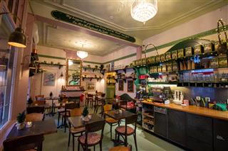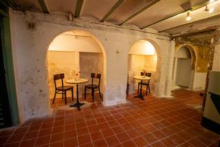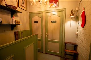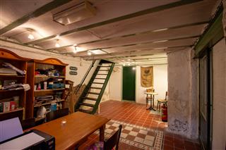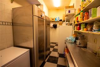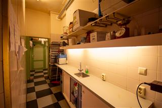 In de lunchroom bevindt zich rechts de stijlvolle werkbank waar de verse koffie, broodjes en andere specialiteiten worden bereid. Aan de achterzijde bevindt zich rechts de nette, gescheiden toiletgroep. Vlak daarvoor staat een trap die toegang geeft tot het ruime souterrain, dat momenteel in gebruik is als opslagruimte, maar dankzij de oppervlakte ook andere functionele mogelijkheden biedt.