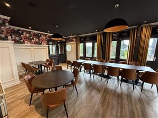 De horecaruimte is verdeeld over meerdere compartimenten, wat zorgt voor een knusse en sfeervolle uitstraling. Er zijn mogelijkheden voor private dining.