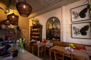 De indeling van Kaatje’s Bakery Café is overzichtelijk en praktisch ingericht, met een logische routing voor zowel afhaal als gasten die willen blijven zitten. Bij binnenkomst wordt men direct naar de toonbank geleid waar het assortiment overzichtelijk wordt gepresenteerd. Dit vormt het centrale punt van de zaak. Aan de rechterzijde van de winkel bevindt zich het zitgedeelte, waardoor een natuurlijke scheiding ontstaat tussen afhaal en gasten die willen blijven zitten. De open opzet zorgt voor een ruimtelijk gevoel en een prettige sfeer. Vanuit de winkel is zicht op de vitrine, de counter en het terras.