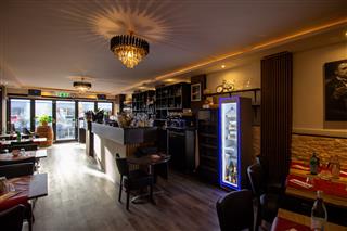 De rechterzijde van het restaurant is ingericht met voornamelijk vierpersoons tafels die eenvoudig gecombineerd kunnen worden. In het midden bevinden zich extra zitplaatsen. Achterin bevindt zich de keuken, die in directe verbinding staat met het restaurant voor een efficiënte workflow. De gescheiden dames- en herentoiletten en extra opslagruimte bevinden zich eveneens aan de achterzijde.