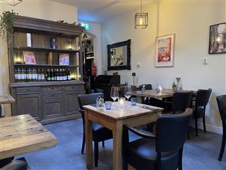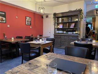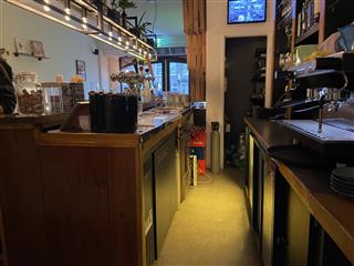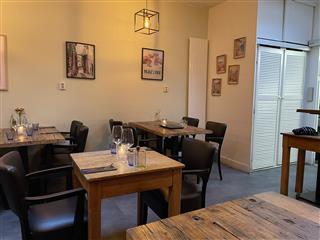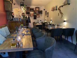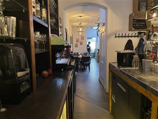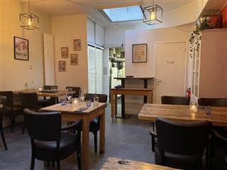 Via het terras aan de voorzijde bereik je de entree in het midden van het pand en kom je direct de verkoopruimte binnen. Het terras heeft ca. 15 zitplaatsen en een aantal staplaatsen Bij binnenkomst ziet u direct diverse zitplaatsen aan zowel de linker- als de rechterkant. Totaal 22 zitplaatsen in het voorste gedeelte. 5 zitplaatsen aan de bar. Zodra u doorloopt, bevindt de bar zich aan de linkerzijde. Net voor de bar zit tevens en het midden van de ruimte een opslagruimte. Hier achter bevindt zich het tweede restaurant gedeelte. Hier bevinden zich 18 zitplaatsen, achterin de toiletgroep. Daar achter bevindt zich de compacte keuken.