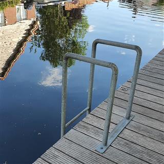 Het terras aan de waterzijde dient ook als boodschappensteiger aanlegplek. Aan de achterzijde nog 1 klein bescheiden waterterras.